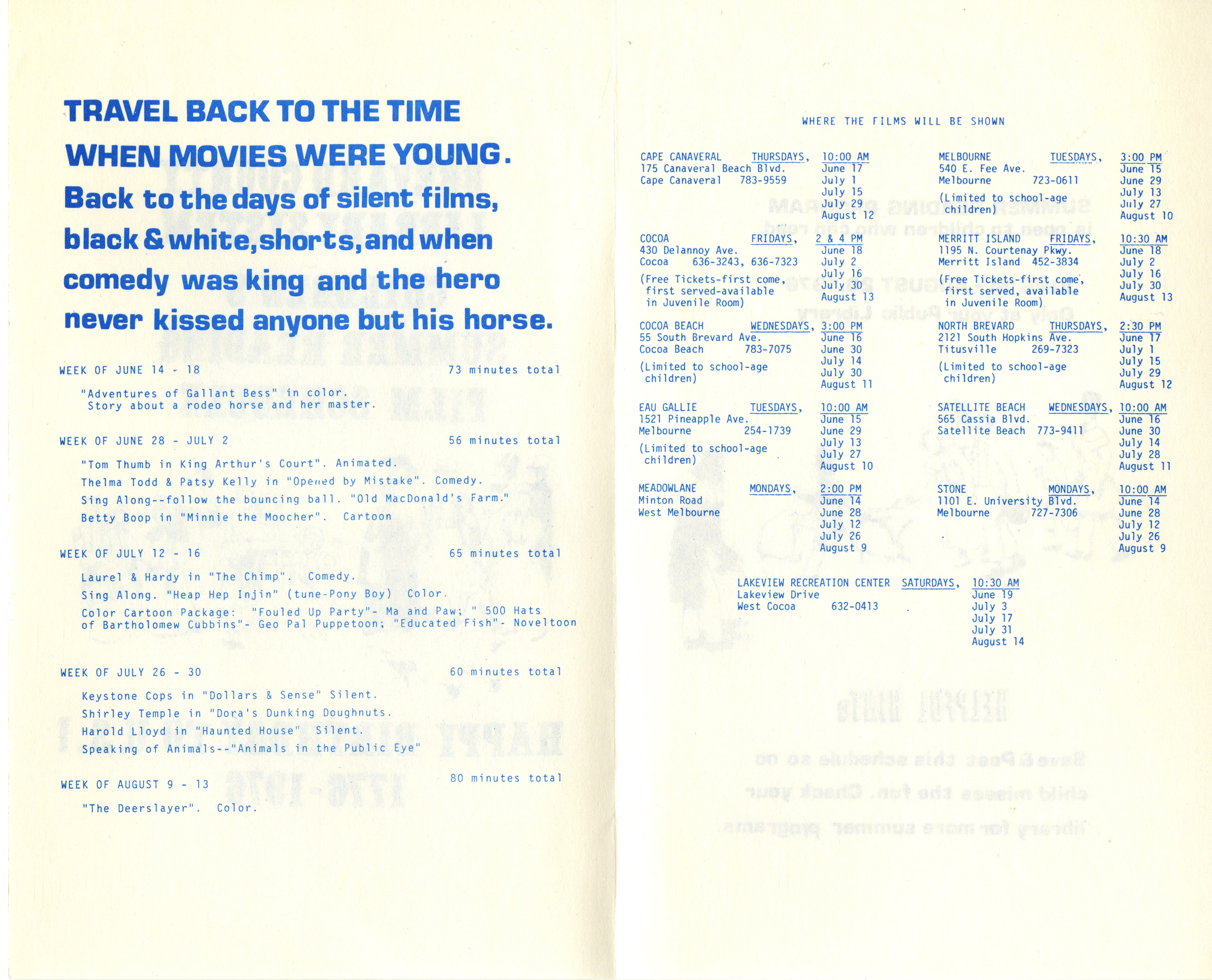 Cocoa Public Library Program Front