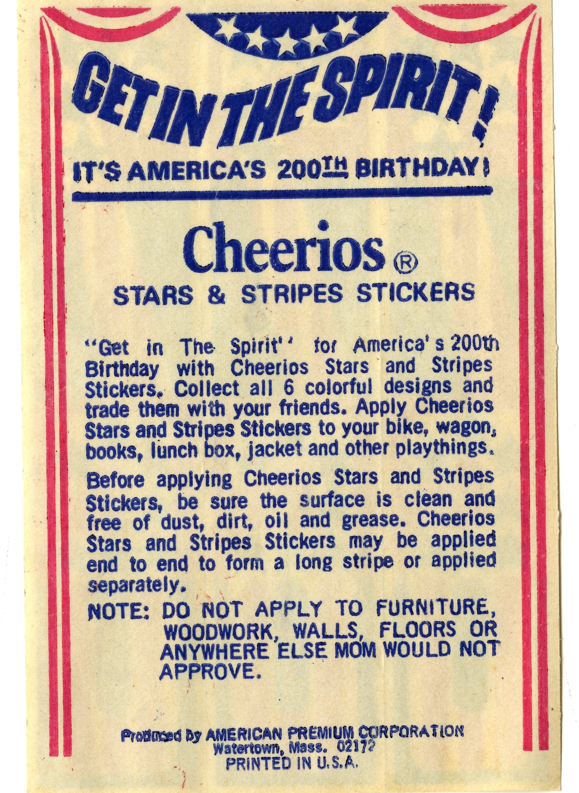 Cheerios Stars and Stripes Sticker Back