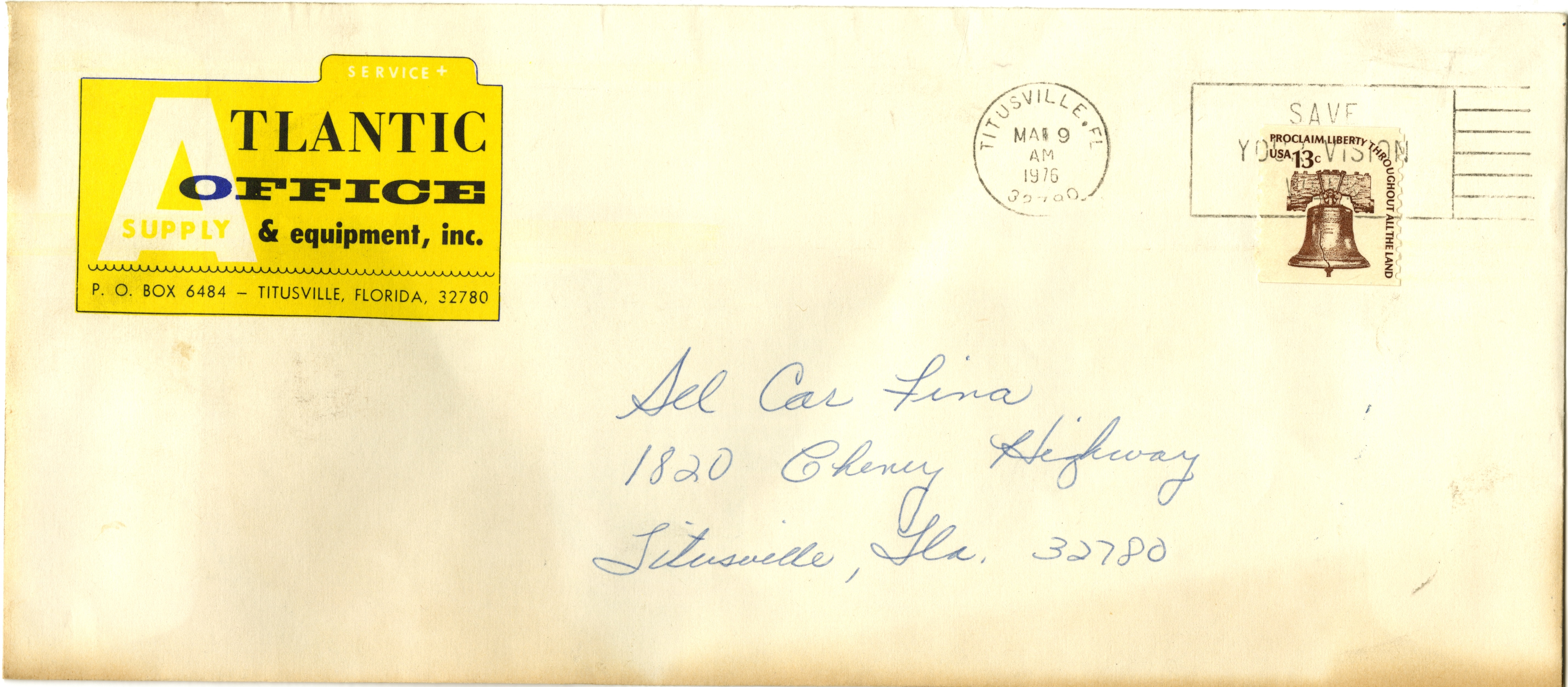 Envelope 1 Front Atlantic Office Supply Equipment (Titusville, FL)
