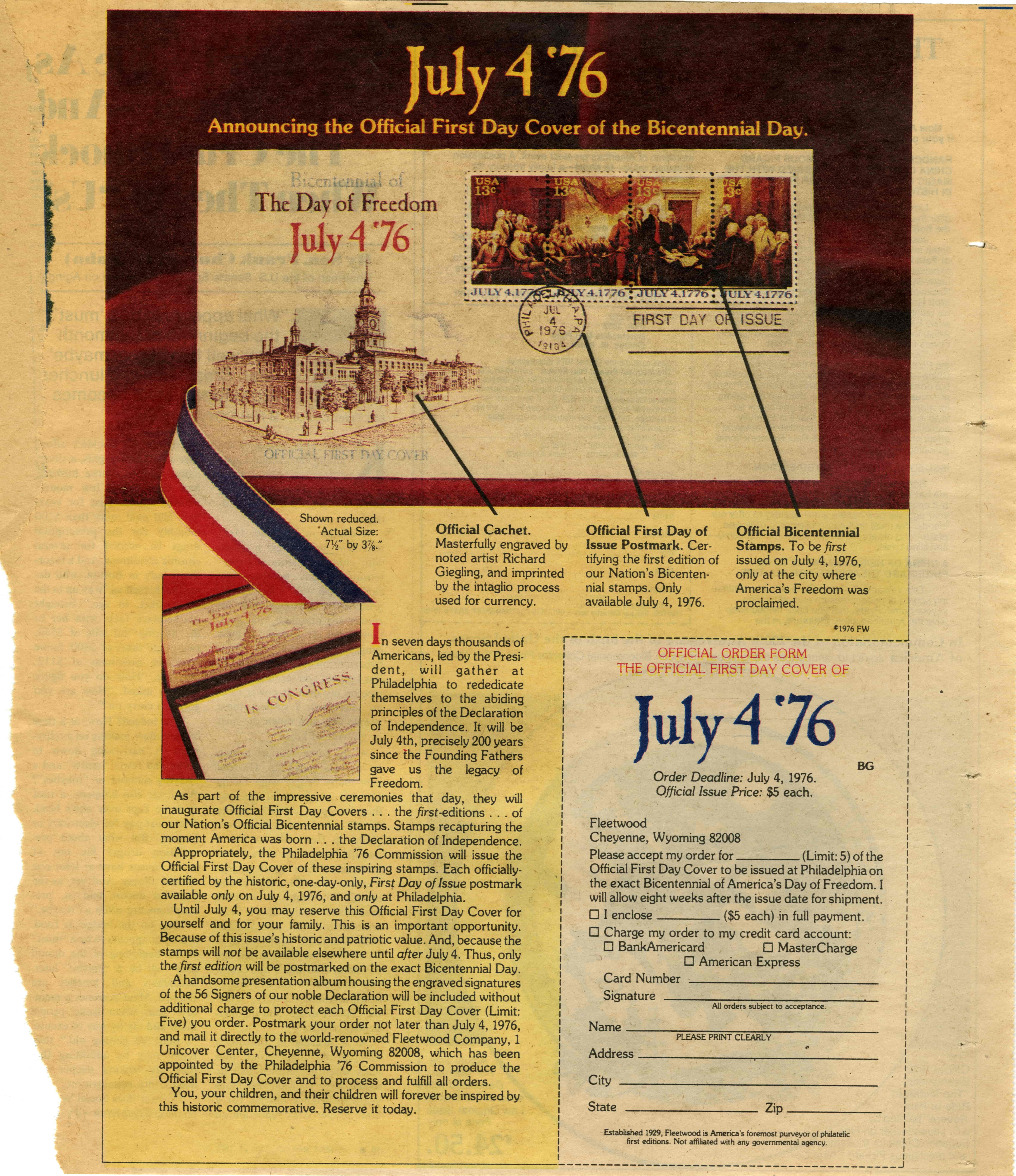 Official First Day Cover Stamp Ad 1