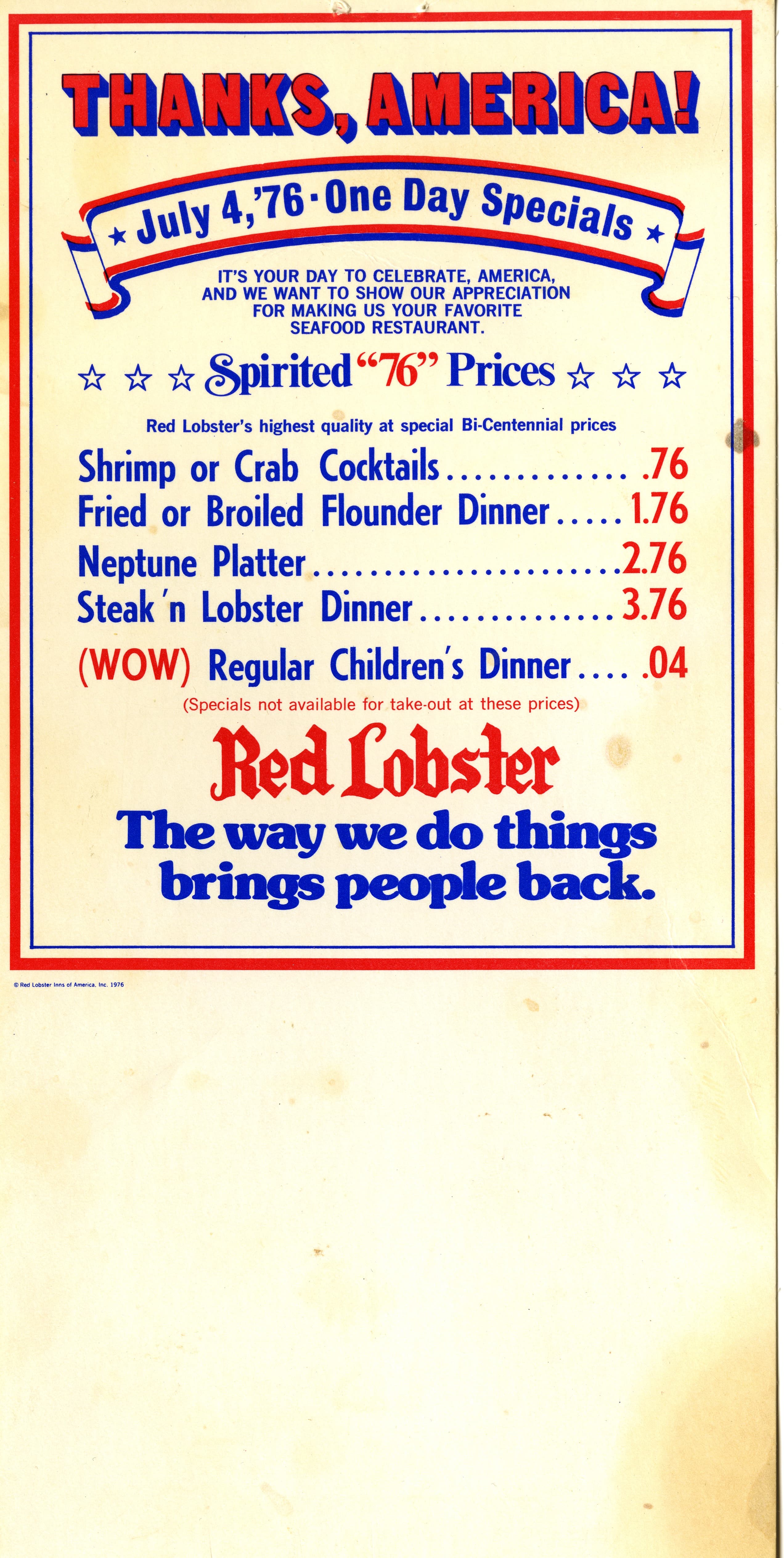 Red Lobster Menu